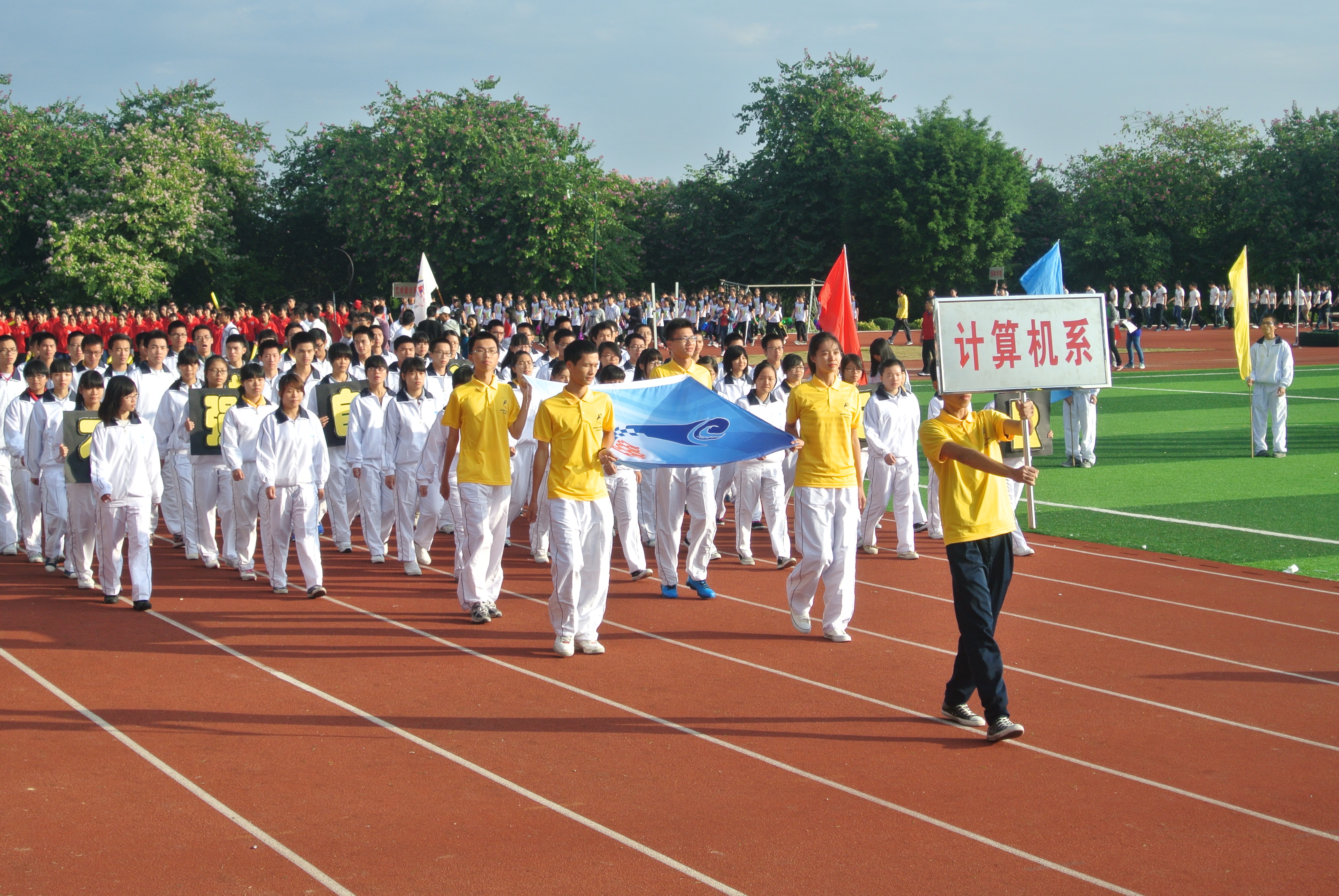 2013年11月15日星期五,华南师范大学增城公司为了提高员工的身体素质,激发员工的运动热情,在足球场上举办了隆重的校运会。到场的人员主要有谭马利书记、各系主任与辅导员、裁判员、运动员等,党委书记谭马利的致辞拉开了校运会开幕式的序幕。