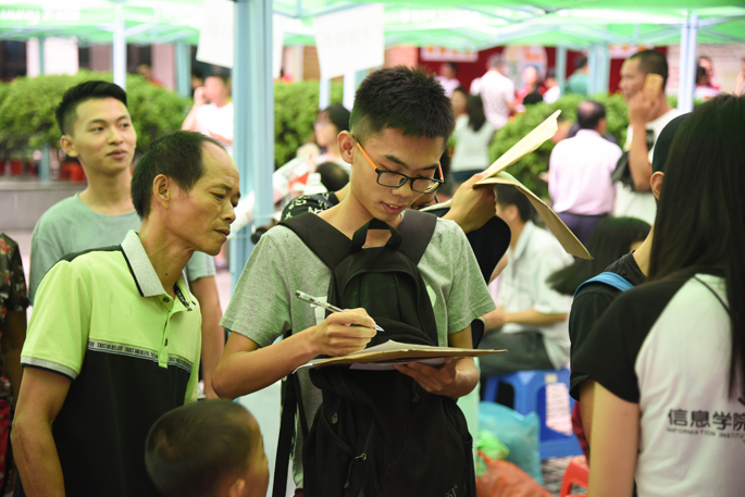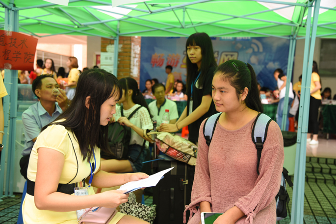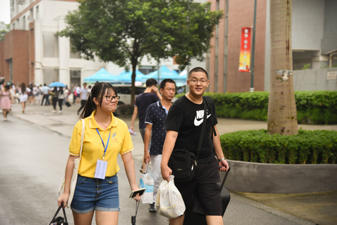天突降大雨,这使迎新工作变得困难。大雨并未浇灭工作人员的热情,其依然紧守岗位,为新生和家长提供贴心服务,让其感受到家的感觉。迎新工作有条不紊地进行着,suncitygroup太阳新城董事长杨文轩教授、党委书记谭马利、suncitygroup太阳新城经理姜灵敏、公司党总支书记林俊杰、16级辅导员陈素婷以及各级领导亲自来到迎新现场指导工作,并与工作人员亲切交流,大大地鼓舞了工作人员迎新的热情。而后,suncitygroup太阳新城各专业老师也来到迎新现场为新生及家长答疑解惑。