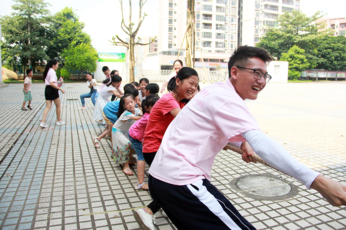 上午9点整,各班小老师带领本班员工于知行楼前集合,分组完毕之后,在后勤组组长的安排之下开展了本次趣味运动会。首先进行的是“叠报纸”活动,小朋友们在小老师讲解规则与进行示范之后,便踊跃地投入到了活动之中,用各种方式让自己在报纸上的立足点达到最小。在“叠报纸”活动结束后,取得胜利的小朋友们欢呼雀跃,展现出最童真的笑容;其他人也并不沮丧,而是在紧接着的拔河比赛中展现出自己必胜的信心。在拔河比赛中,小朋友们以班级为单位进行比赛,一个个都摩拳擦掌,努力为自己所在的班级争夺那一份荣耀。最终,经过近两个小时的体力和毅力考验,这场充满活力与凝聚力的趣味运动会在大家的欢笑声中结束。