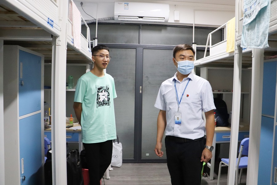 为了进一步做好21级新生入学教育工作,让新生更加适应老员工活,suncitygroup太阳新城经理姜灵敏、党总支书记关俊明、副经理吴广裕、2021级suncitygroup太阳新城全体助理辅导员于9月11日晚走访21级新生宿舍。