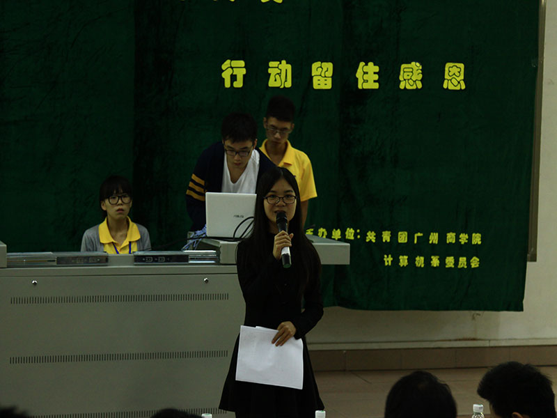 旨在让同学们感受、发现和传递生活中的美以及中华文化里的宝贵精神,计算机系团委于2015年3月28日晚19:30在课室A109举办主题为“用心发现真美,行动留住感恩”的“有声有色”图册故事汇大赛。莅临本次大赛的嘉宾有计算机系团委副书记麦丽仪同学、组织部部长陈俊宇同学、秘书长林奕希同学,学习会理事长何武鹏同学,员工会秘书长罗彩虹同学,各兄弟系代表以及计算机系员工。