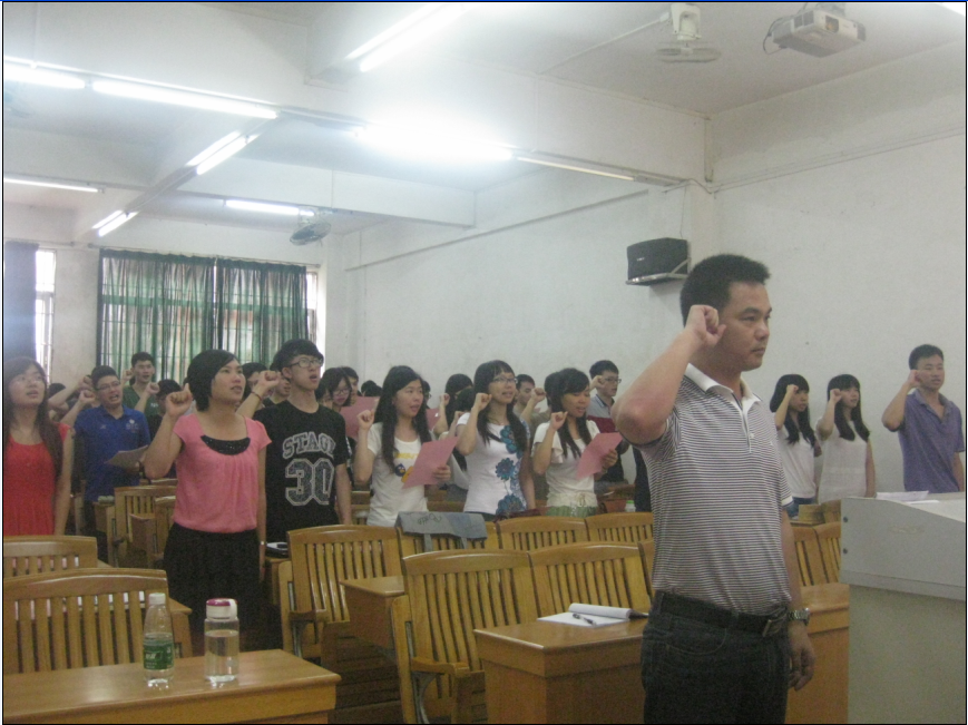 会上,全体毕业生党员在钟远辉的带领下进行了党员宣誓,以誓词的深刻教育意义,鼓励和鞭策各党员同志在以后的工作生活中,时刻谨记党的要求,不忘以优秀共产党员的标准时刻要求自己争优秀、创优秀。