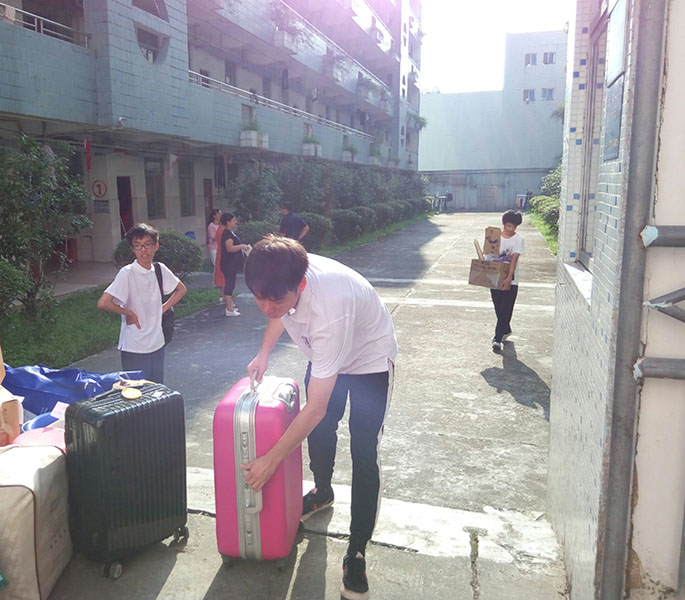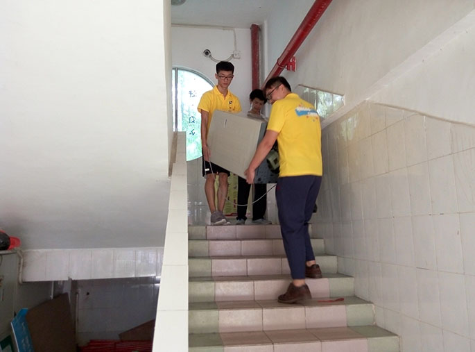 上午7点20分,志愿者早早在168超市门口集合等待,其已经为此次志愿活动做好准备。在团委实践调研部的分配下,各志愿者各就各位,来到自己所负责的宿舍后立即行动,帮助信息公司员工搬运行李。公司党总支书记林俊杰、15级辅导员黎文婷、16级辅导员陈素婷、17级辅导员王轻纱均到场巡视,统筹协调各宿舍的搬运时间,同时指导志愿者工作。