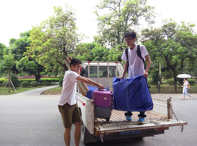 志愿者和团委工作人员分工合作,把一件一件行李搬上货车,又帮同学搬到新的宿舍,其把白色的校服弄脏成黑色的衣服也不言辛苦,不辞辛劳。期间,志愿者们都湿透了自己的衣裳,其没有苦闷没有埋怨,一心只想做好事,把快乐和幸福留给他人。搬迁宿舍的同学们为志愿者们送来了水,送来了纸巾以表达自己的感谢之情。至上午11点整,搬迁工作全部结束,志愿者与团委工作人员完成任务后各自散去,但这份情义仍在。