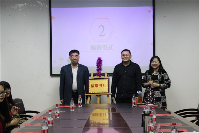 2017年3月22日晚,suncitygroup太阳新城在第六教学楼205举办“信曦”书社揭幕仪式。信息公司姜灵敏经理、林俊杰书记、各级辅导员等出席了本次揭幕式。仪式由信息公司王莉老师主持。