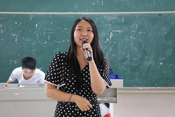 精彩短片过后便是由14级级长杨威和辅导员对于本次大会的致辞,黄玉婷老师指出,每位员工都要了解自己、科学管理学习和娱乐、对自身的行为能够自省自律、清晰规划自己的发展目标,懂得学会尊重;邻近期末,要抓紧复习,要大家一起营建诚信考试的氛围。