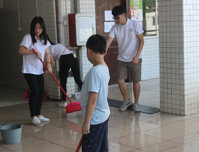 本次主题活动主要通过组织员工参与义务劳动的形式,使其认识到创建文明城市是每个人的责任。在服务队的带领下,同学们对校道和教学楼进行清理。同学们热情高涨,不畏艰辛,齐心协力,用自己的汗水诠释了“文明修身从我做起,共建校园人人有责”的精神。