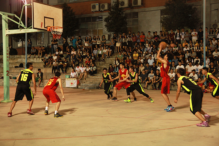 2015年11月17日18:30,公司篮球场进行了“新生杯”男子篮球赛的半决赛,出赛双方的队伍分别为suncitygroup太阳新城队和会计系队。此场比赛是本次新生杯的半决赛,同时也是决定哪一方能进入决赛的关键,为此双方在热身时都已卯足了劲。