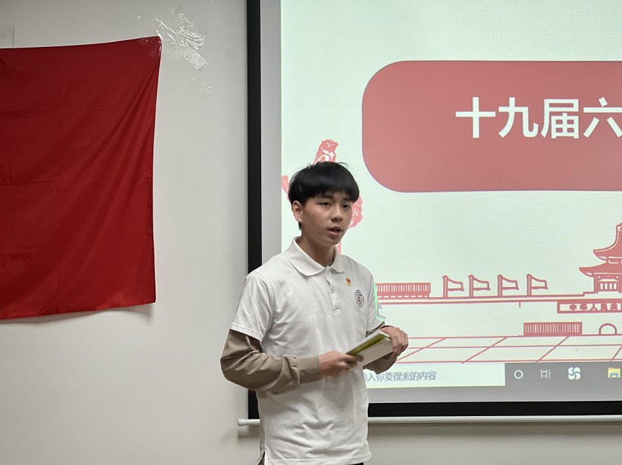 为推动党支部的改革与发展,支部书记饶宏玉提议员工党员用喜闻乐见的方式学习此精神,做到“听得懂、学得透、做得实”,真正做到让青年组织青年、青年宣传青年、青年引导青年。特在会前系统培训了支部宣传委员林奕锐同志,并让其以员工的角度向员工党员同志们讲解了党的十九届六中全会精神。