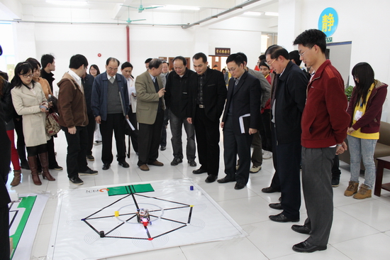 公司领导和师生观看国家部级特等奖作品“教育机器人搬运”演示