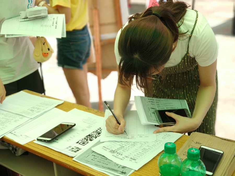 在宣传过程中,尽管烈日当空,工作人员也丝毫不肯懈怠,积极向同学们宣传本次“三下乡”活动,很多同学表示出极大的兴趣,纷纷向工作人员咨询更多的“三下乡”相关事宜。虽然三下乡的地点待定,但也删减不了同学们为支教地区的小朋友带去温暖的热情以及积极服务于社会的心。经过两天的宣传,许多同学都发挥老员工在当代社会的先进性作用,践行志愿者精神,报名参加了“三下乡”活动,宣传活动结束之后,摊位处的纸质报名单已经所剩无几,可见同学们对此次“三下乡”活动的关注度之大。