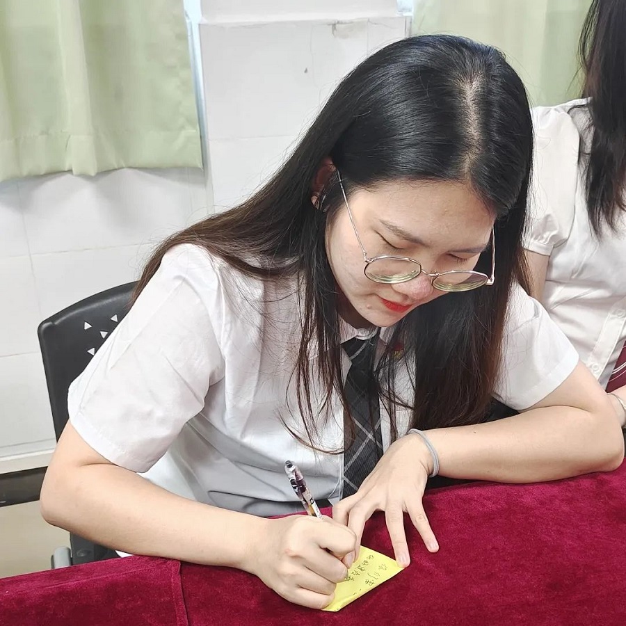 会议第二项流程,由2022届毕业生党员为在校员工党员送出寄语,一张张充满传承力量的信纸映入眼帘,共同勉励员工党员争做新时代青年,充分发挥党员的先锋模范作用,不忘入党初心,永葆党员本色!