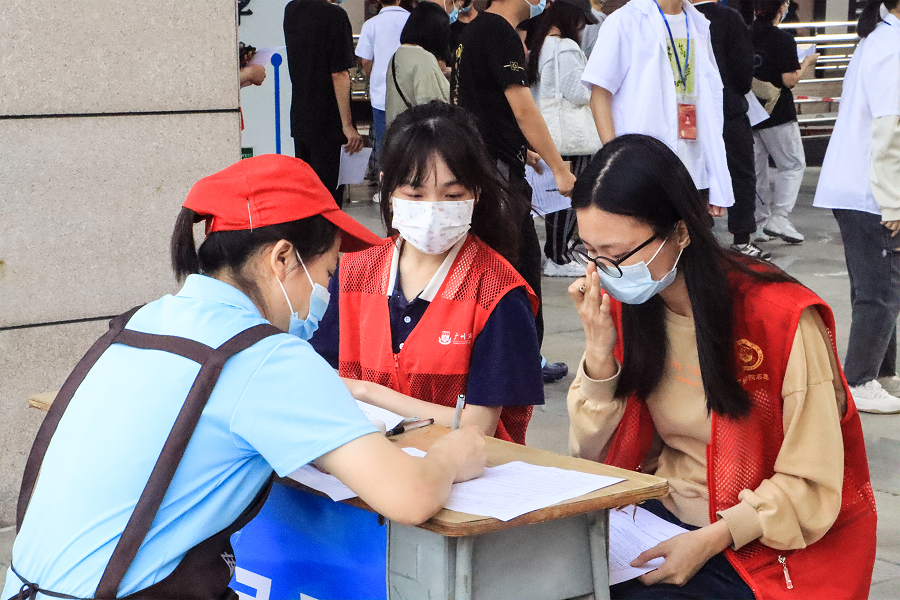 在疫苗接种现场中,相关部门工作人员和公司志愿者们积极开展相关志愿服务工作,并通过科学规划分区,保证接种全过程单向不反复。接种人员严格遵守防疫要求佩戴口罩,保持一米距离,在医护人员与志愿者的引导下有序排队。志愿者组成现场保障团队,对接种人员进行健康码身份信息核对、组织接种人员填写《知情同意书》,在各个区域做好秩序维护等预备工作。医护人员组成专业团队进行疫苗注射、提供医疗咨询等工作,在快速完成核酸疫苗注射的同时,也为师生的健康安全做了充足的准备,让师生打得安心、打得放心。保卫处、总务部后勤管理处和各学部院系协同配合,确保本次疫苗接种工作有序、安全、高效地开展。