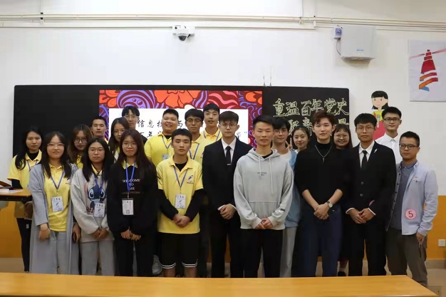主持人宣布完比赛环节及评分规则后,比赛正式开始。首先进行的是诵读环节,五位选手按出场顺序抽取稿件,并依次上台进行自我介绍,他们用自己独特的风格,从不同的方式、角度,表达对中国共产党的敬仰之情。紧接着,进入第二环节,选手随机抽取有关党史内容的卡片,并对其给定的内容进行演讲,他们用自己满腔的热情、将理想付诸言语,他们的声音,时而低沉,时而高亢,眼神坚定,让同学们沉浸在浓厚的党史氛围中。本次比赛的最后环节,组队诵读,选手们配合默契,以真挚的情感,洪亮的声音,慷慨激昂的情调,将比赛推向高潮。最后,评委们选择出最终获奖选手。他们分别是:冠军——3号选手朱伟茏,亚军——1号选手邓广源,季军——1号选手赖世鹏。