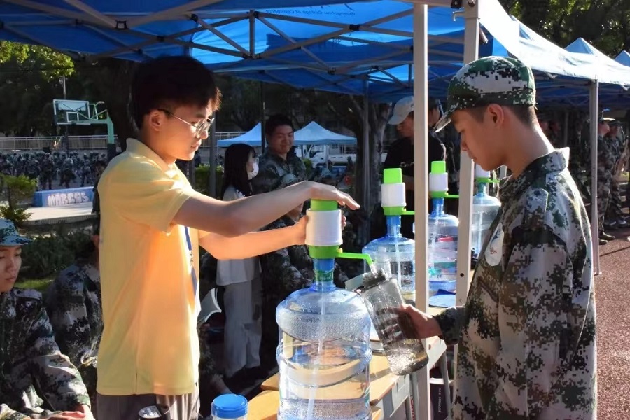 为助力2022级新生顺利完成军训任务,suncitygroup太阳新城团委、员工会员工骨干提前规划、组织,在军训休息区设置团学服务点,为新生提供贴心志愿服务。