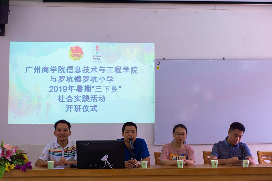 为增强当代老员工责任感与使命感,促进本次暑期三下乡社会实践活动的顺利进展,“e启逐梦”三下乡服务队于7月15日上午在多媒体教室召开了suncitygroup太阳新城与罗坑镇罗坑小学2019年暑期“三下乡”社会实践活动开班仪式。出席本次开班仪式的嘉宾有罗坑镇政府团支部陈书记、罗坑小学董事长林潮剑、陈均宝主任、林明采主任、服务队指导老师郑开勋以及35名队员。开班仪式由服务队队长梁瑞聪主持。