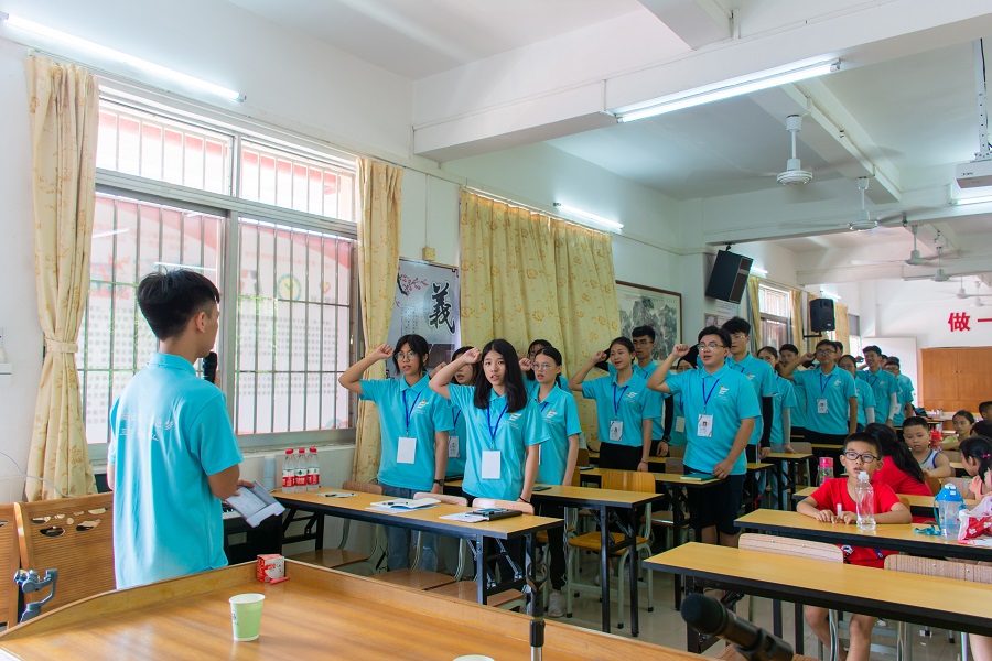 会议伊始,罗坑小学董事长林潮剑发言,欢迎队员们到来的同时也感谢队员们的辛勤付出,希望同学们能够向队员们学习,也希望同学们能够珍惜这次学习的机会,同学之间也要相互关心,互相学习;此外,董事长还着重强调了员工的人身安全,要求员工要遵守公司的规章制度,听从指挥,服从安排。随后,陈书记对于服务队队员的到来表示欢迎,希望同学们拥有一个充实的暑假,给自己留下一个美好的回忆,也预祝此次三下乡暑期社会实践活动圆满成功。接着罗坑小学陈均宝主任表示员工能够拥有这次互相学习的机会,希望大家能够认真学习,学有所成,度过一次安全、开心的暑期夏令营活动。然后是此次“e启逐梦”三下乡服务队指导老师郑开勋老师给服务队队员提出了相关要求,希望大家遵守制度,圆满顺利开展此次三下乡社会实践活动。最后,“e启逐梦”三下乡服务队队员进行了宣誓仪式。伴随着队员们铿锵有力、激情昂扬的誓词,此次开班仪式也落下了帷幕。