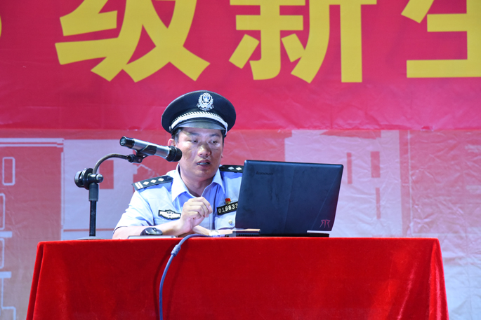 副所长首先列出各类犯罪案件的比例数据,以此来告知新生要注意提高防范意识,其举出具体校园犯罪案件,让新生们意识到校园犯罪案件就在身边,警惕意识不可缺。其中在校园内发生的案件最多的是盗窃案件和诈骗案件,盗窃案件发生的原因往往是员工不注意保管自身财物,从而让盗窃者有机可乘。诈骗案件的发生也大都是受骗者警惕性不足,轻信陌生人的电话、短信。副所长还提出除了要注意校内安全之外,也要注意校外安全,不要带校外人员进入校园内。