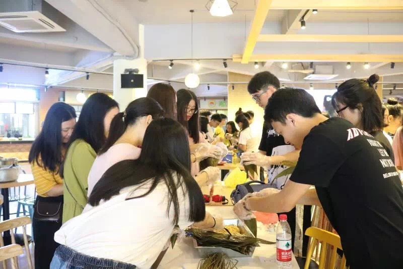 活动开始,主持人让大家先用抽签的方式分好了组。首先进行的是名字接龙环节,让干部们在最短的时间记住同组成员的名字,为接下来的活动打下了坚实的基础。接下来的环节是包粽子,每个人都通过观看大屏幕的视频和饭堂阿姨的细心讲解,学习如何包粽子。接下来到干部表演时间。第一个节目是由信工公司干部带来的歌曲表演《price tag》,虽全程清唱,却也无法掩饰演唱者清亮的歌喉及惊艳的音色。小品《僵局》引得在场的同学捧腹大笑,各种夸张的表情和动作体现了他们的精心准备。接着由外国语公司干部带来的歌曲串烧和舞蹈表演表现出了他们多才多艺的一面。不同的歌曲完美衔接,流畅的舞蹈赏心悦目,让大家无不拍手叫绝。紧接着就是《你划我猜》环节,台上的干部为了表述出自己看到的词语,手脚并用。台下的干部绞尽脑汁,想让自己队伍得到最高的分数。他们彼此的默契配合让人拍案叫绝,友谊也由此更近一步。游戏环节过后,大家津津有味地吃着粽子,吃完后自觉把卫生搞干净再离开。