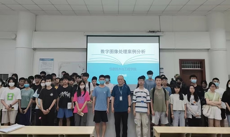 在互动环节中,徐海峰博士亲切可亲的语气进行解答同学们在数字图像处理方面相关的生活运用问题,并对同学们的总结给予肯定,在讲座的最后,博士热情地邀请有兴趣的同学进行探讨交流。在讲座的尾声,徐海峰博士从专业的角度为大家科普了数字图像处理在生活当中的应用,解答了关于生活应用案例背后的技术处理所在,启发了广大师生的思考,并且表示不管在哪个生活领域,我们应关注细节,主动发现问题、分析问题、解决问题,同时也希望同学们牢记团队作业很重要!