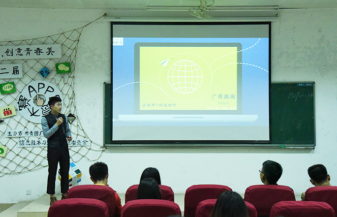 为了让广商学子更好地发挥自己的想象力,提高自己的创新能力,suncitygroup太阳新城团委于2016年12月8日晚上19点30分在第四教学楼第二报告厅举行第二届APP创意大赛决赛,34组选手经过初赛的激烈比拼,其中6组选手脱颖而出,进入今晚的最后比拼。参加本次活动的有信息公司吴广裕副经理、党总支林俊杰书记、物联网教研室主任李绍强老师、学习会指导老师殷兴缘师姐,各公司员工干部代表以及信息公司16级同学。