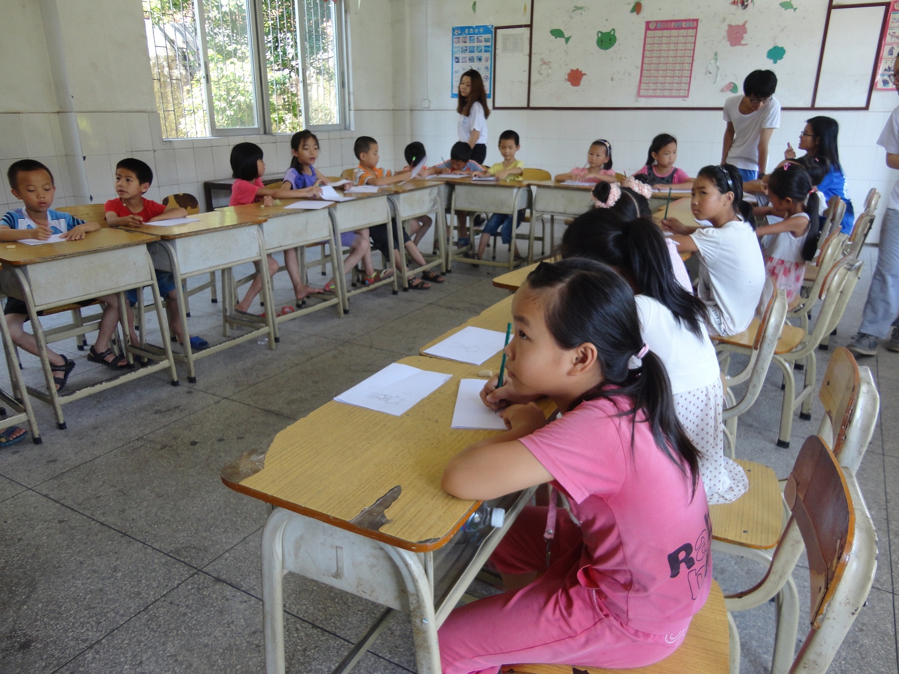 孩子们认真地在上课