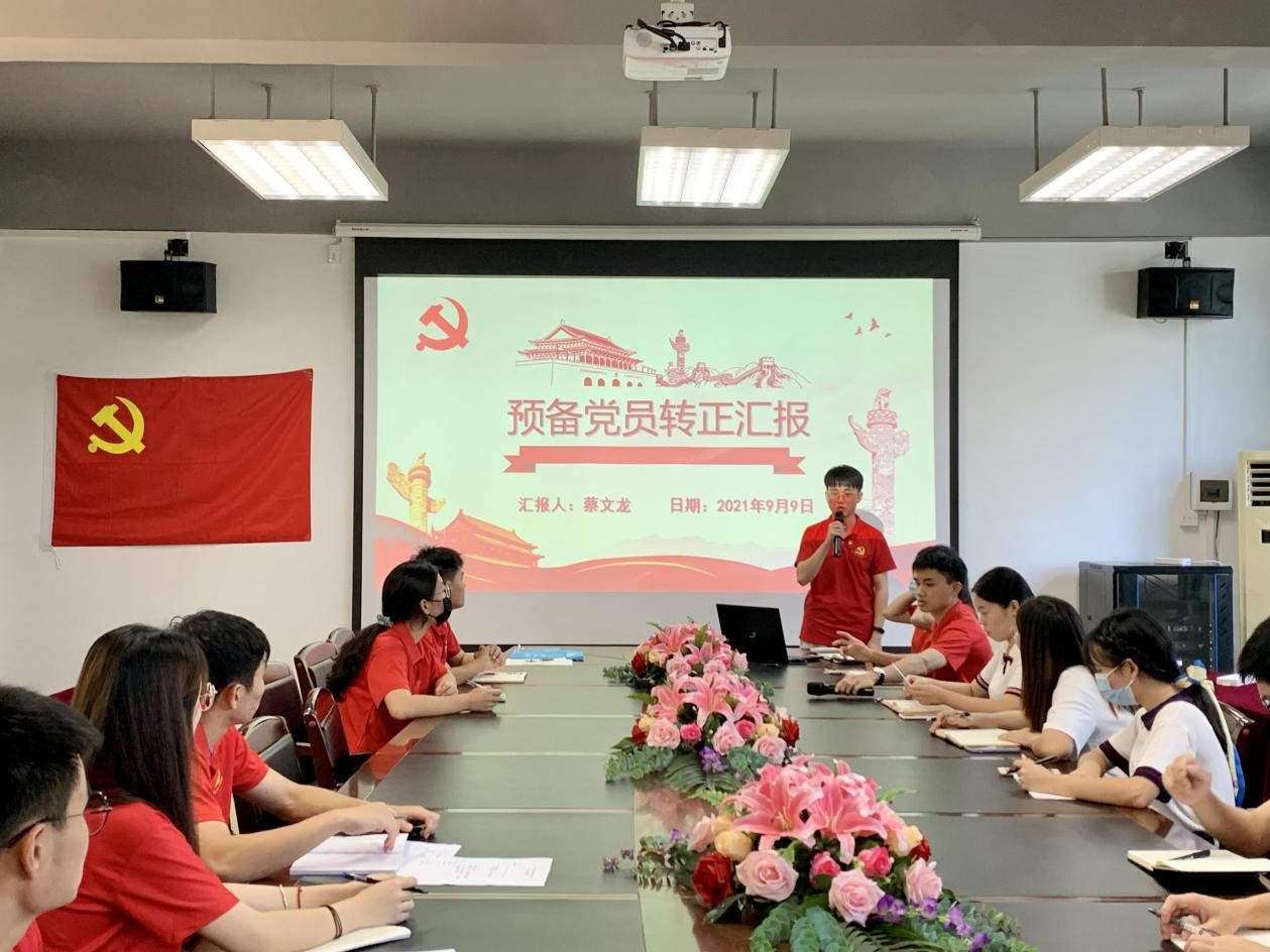 为增强支部党员队伍凝聚力与战斗力,贯彻执行从严治党,培养优秀党员,进一步加强基层党组织建设,落实党支部发展党员工作计划。suncitygroup太阳新城员工第三党支部结合“牢记初心,从心入党”主题教育,于2021年9月9日在六教205党员活动室召开蔡文龙同志通表转正会议,会议由员工第三党支部宣传委员赖晓琪同志主持。