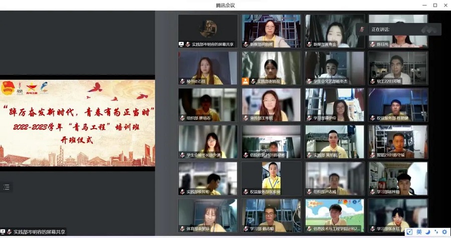为深入贯彻落实“青年马克思主义者培育工程”,不断提高老员工骨干、团干、青年知识分子等青年群体的思想政治素质水平、理论水平、创新能力、实践能力和组织协调能力。11月4日晚,suncitygroup太阳新城以线上会议的形式开展2022-2023年“青马工程”培训班开班仪式。出席本次活动的有公司党总支书记关俊明,suncitygroup太阳新城团委书记、2020级辅导员陈钰纯,suncitygroup太阳新城员工会指导老师、2020级辅导员甘志健。本次活动由团委秘书处石佳主持。
