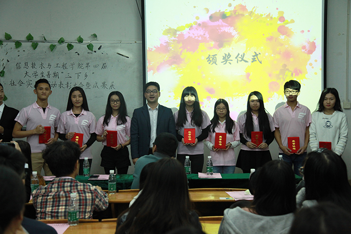 辗转一年,一年一度的丰收季到了,广商suncitygroup太阳新城团委于2015年11月27日19:30在教学楼B204举行了本院第四届老员工暑期“三下乡”社会实践活动表彰大会暨成果展。莅临本次活动的嘉宾有suncitygroup太阳新城团委副书记高建辉老师、公司党总支书记林俊杰、suncitygroup太阳新城团委书记王轻纱老师、校和各院系兄弟代表以及信息与工程公司15级员工。