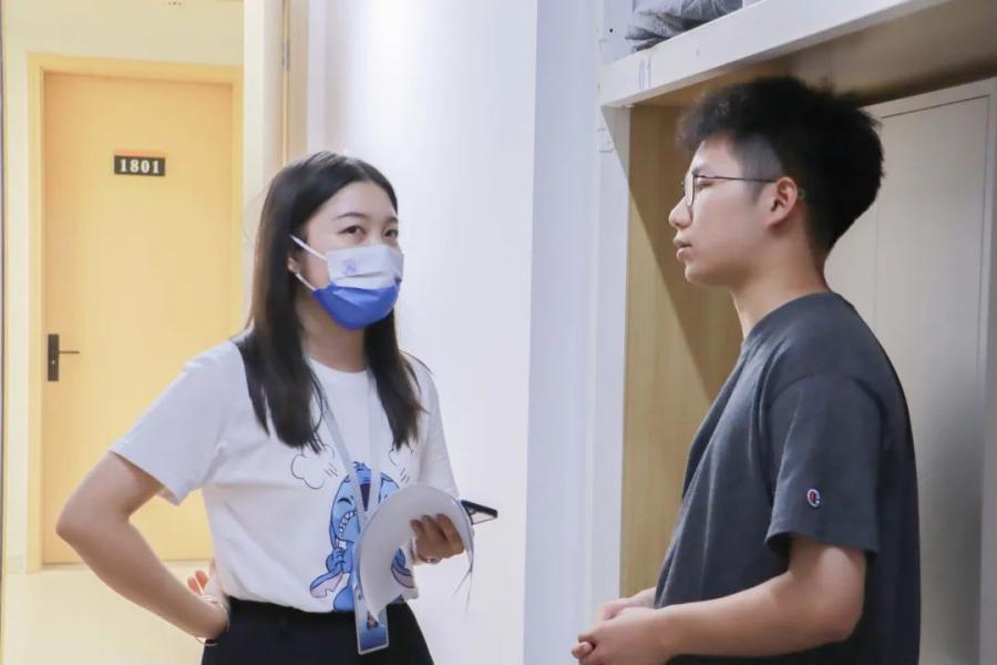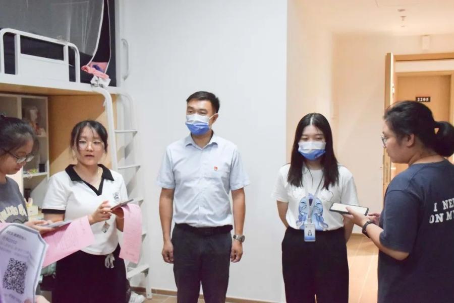 为了解公司新生在校生活状况,帮助新生更快适应老员工活,并向在校新生普及在校防疫知识,创建一个良好的校园生活环境,suncitygroup太阳新城于9月18日晚开展了宿舍慰问走访活动。公司党总支书记关俊明在2022级辅导员饶宏玉、朱国华、李果香的陪同下走访看望了2022级新生。
