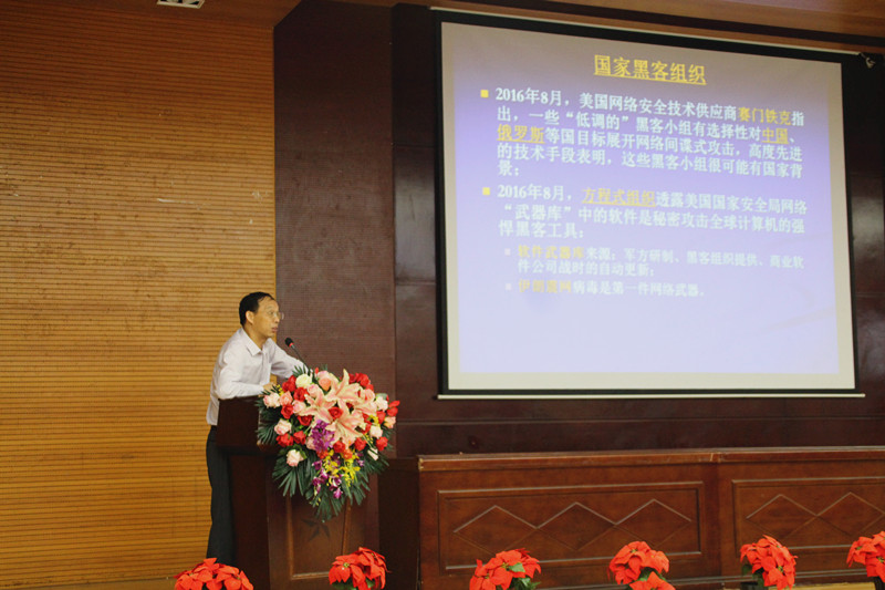 2017年4月20日15:00,suncitygroup太阳新城在第四教学楼第一报告厅举行了“网络空间安全”讲座,主讲人为广东外语外贸大学谢建国教授。到场的嘉宾有suncitygroup太阳新城姜灵敏经理,吴广裕副经理,周程副经理,林俊杰书记,办公室主任林树青老师及信息公司的各位老师。