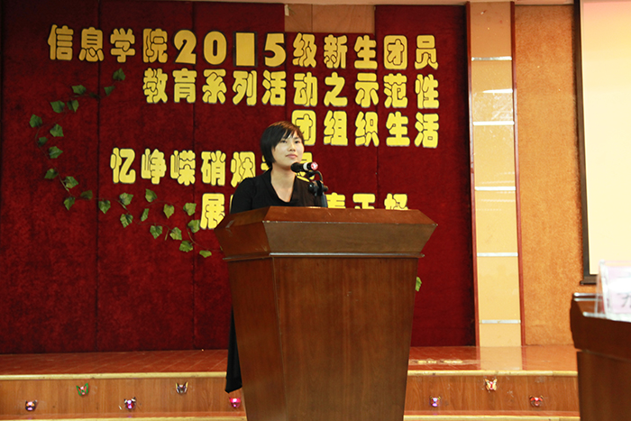 活动一开始便是让人眼前一亮的武术表演,各种侧踢、回旋踢等炫酷动作络绎不绝,双截棍以及双人武术打拳也吸引了全场观众的目光。精彩的表演过后,全体起立奏唱团歌。紧接的是由王轻纱老师带来的发言,其结合多年的员工工作以及在团委内的工作经验,为大家讲述本次活动的开展意义,并提出团员团干普遍存在的问题和改善意见,希望团员能在活动中得到教育,日后坚定自身理想信念、增强团员意识、端正学习态度,团干要提高服务态度和办事效率以便服务团员,也希望各团支部增强班级凝聚力等等,一一向同学们阐释了什么是团组织生活,让同学们对此有了更深的了解。