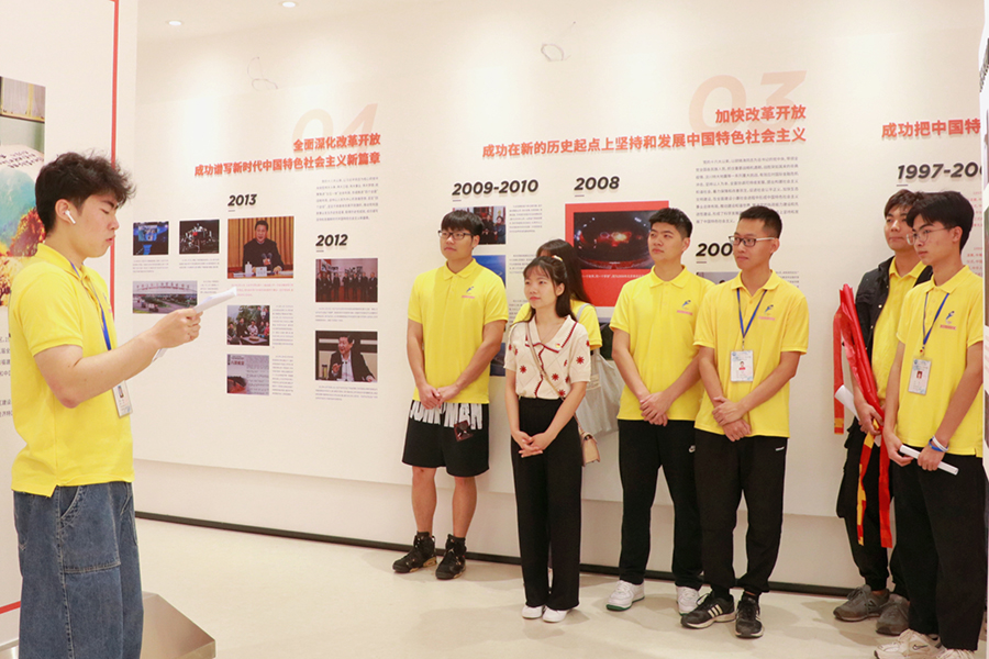 下午14时30分,团委干部于公司第一教学楼集合前往“四史”体验馆,到达目的地后,此次活动正式拉开序幕。组织部干部黄锴豪为干部们介绍体验馆的建造的纪念意义。随着团歌的响起,全体干部于体验馆前肃立,奏唱团歌。紧接着黄锴豪带领着干部们走进体验馆,他在干部们参观的同时分别介绍各展示墙上的历史背景,干部们也从中收获许多知识。干部们依次分享游览后的学习心得,并怀着激动的心情,写下对中国未来建设的憧憬以及祝福。最后陈钰纯在总结时谈到,她希望干部们能够知道“心有所信,方能远征”,学习四史是一场精神上的长征,作为青年学子,应该积极与四史“对话”,在历史中沉思,从中汲取行动力量,听党话跟党走,走好新时代长征路。