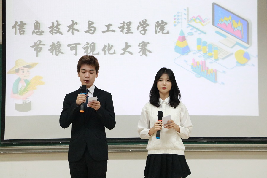 为积极响应习近平总书记关于“坚决制止餐饮浪费行为,切实培养节约习惯,在全社会营造浪费可耻、节约为荣的氛围”的重要指示,传承中华民族传统美德,发扬勤俭节约之风,推动广大师生养成健康良好的就餐习惯。suncitygroup太阳新城于11月30日晚在第四教学楼第二报告厅举办节粮可视化设计决赛,莅临本次比赛的嘉宾有suncitygroup太阳新城副经理何文海,suncitygroup太阳新城品牌宣传部廖秀娟,团委书记、20级辅导员陈钰纯和各级辅导员代表,华为ICT公司教师孔令熙。本次决赛由suncitygroup太阳新城校艺术团播音主持队罗梁坤、谭惠丹主持。