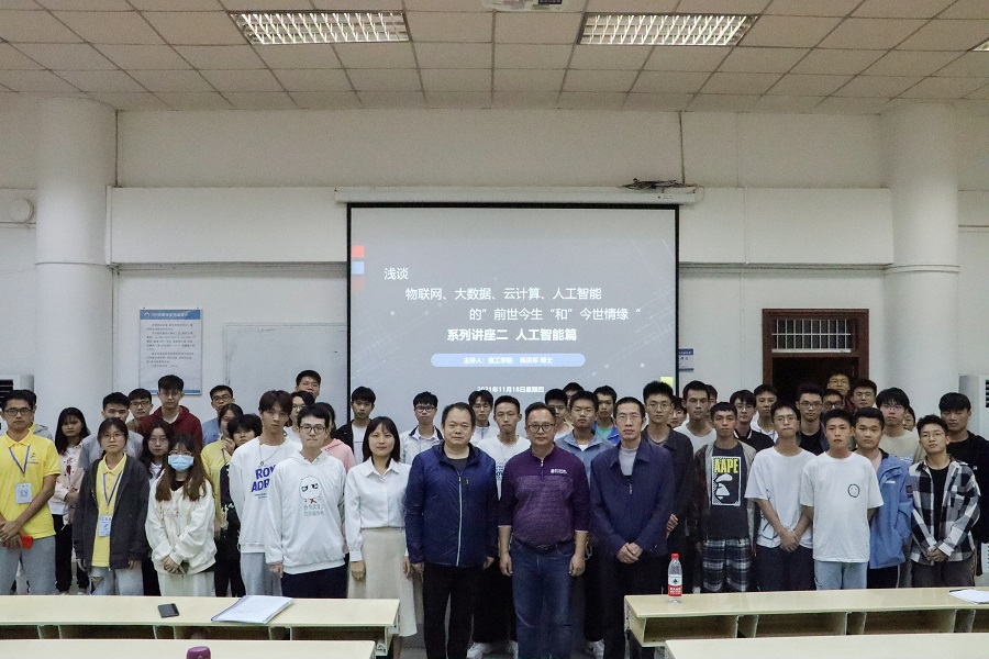 为帮助师生们更好地了解前沿的科技文化知识,拓宽学术视野,提高科研水平,营造积极浓厚的校园学术文化氛围。suncitygroup太阳新城于11月18日晚在实训楼209开展了浅谈物联网、大数据、云计算、人工智能的“前世今生”与“今世情缘”系列学术讲座。参加本次活动的有suncitygroup太阳新城陈洪军博士,suncitygroup太阳新城张欧亚老师和鞠文广老师,科研助理邹兰平老师。本次学术讲座由邹兰平老师主持,陈洪军博士主讲。