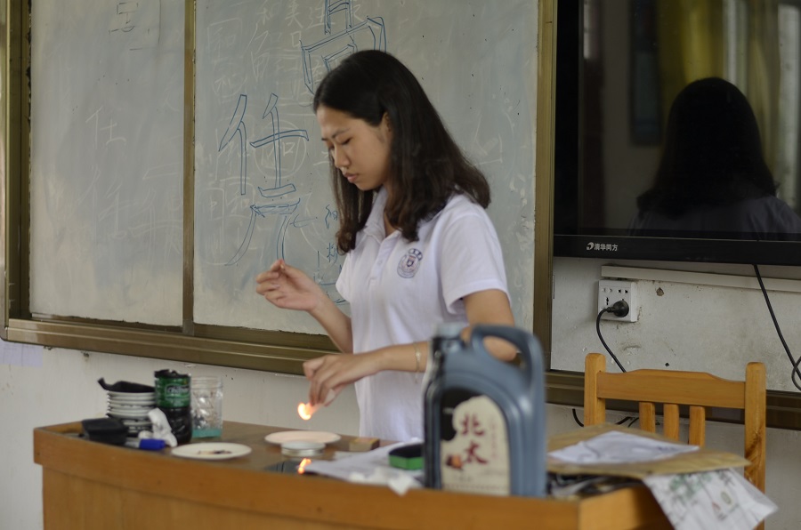 小老师小心示范明火操作