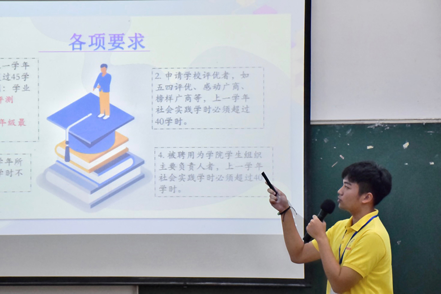 为让信院2020级新生更好地适应大学新生活,了解公司“4+x”学时的具体内容与公司团学组织的建设情况,suncitygroup太阳新城于10月16日晚在四教307、309举行“4+x”学时宣讲会暨团学招新宣传。信院全体2020级新生参加了此次活动。