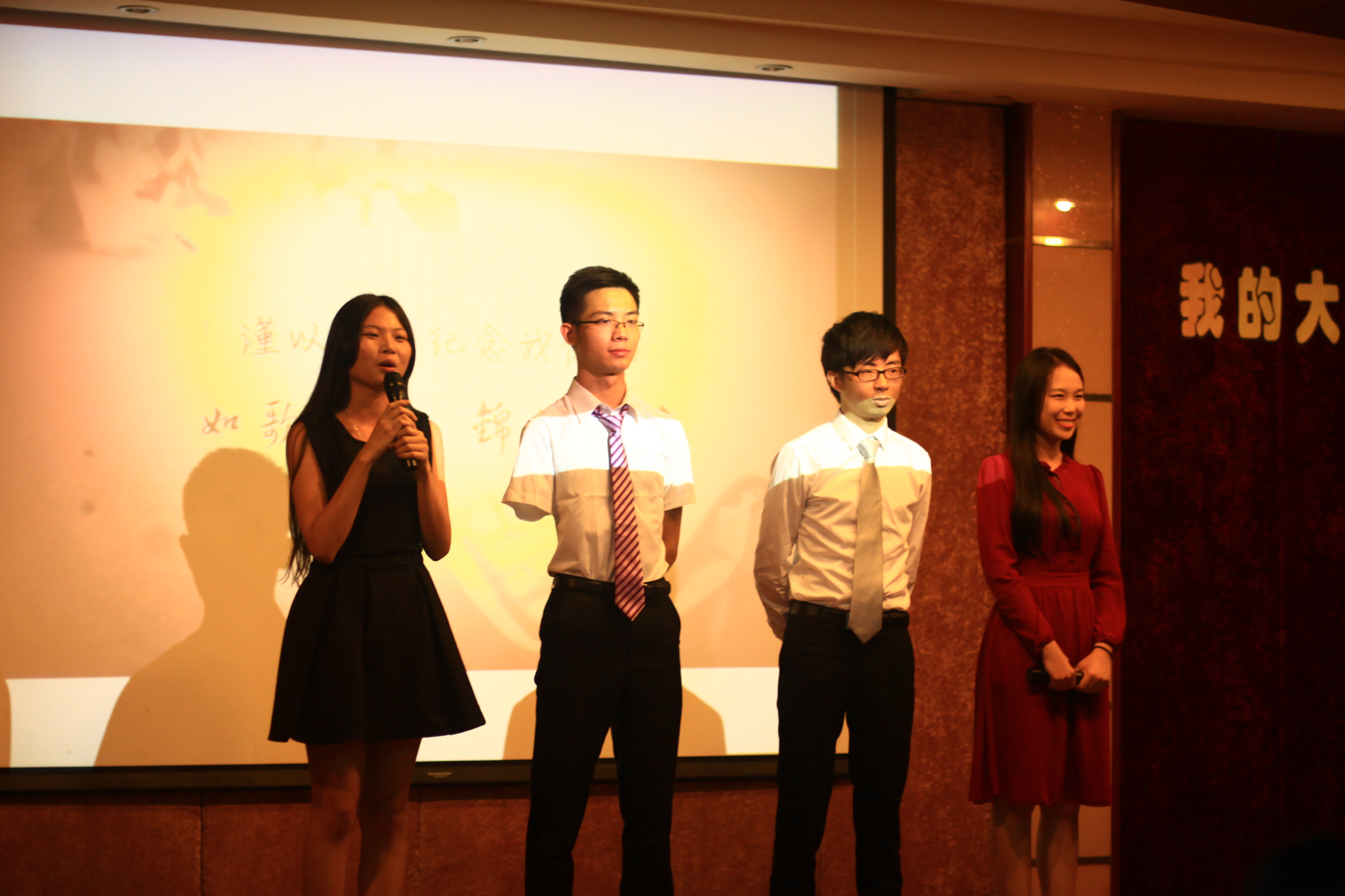 随着开场致辞的结束,紧跟其后,第一部入围的作品在声声华美的乐音中拉开了它神秘的面纱,在其后的时间里其余六部作品依次款款展现在了现场的评委与观众面前。光影流转里,华美的音乐绕梁三尺,七部作品各展千秋,从七个不同的角度诠释了他们眼中的老员工活,其中既有甜美却又曲折的爱情,也有温馨且动人的友情,记录着流转年华的微电影里是来自各级各系的广商学子们倾述在荧屏上关于自己的理想与故事的华美篇章。在每部微电影放映结束后,各组的总负责人们依次上台为自己组的作品进行了详细的讲解,娓娓而谈的讲话和优雅的谈吐无不为各自组的作品增色不少。