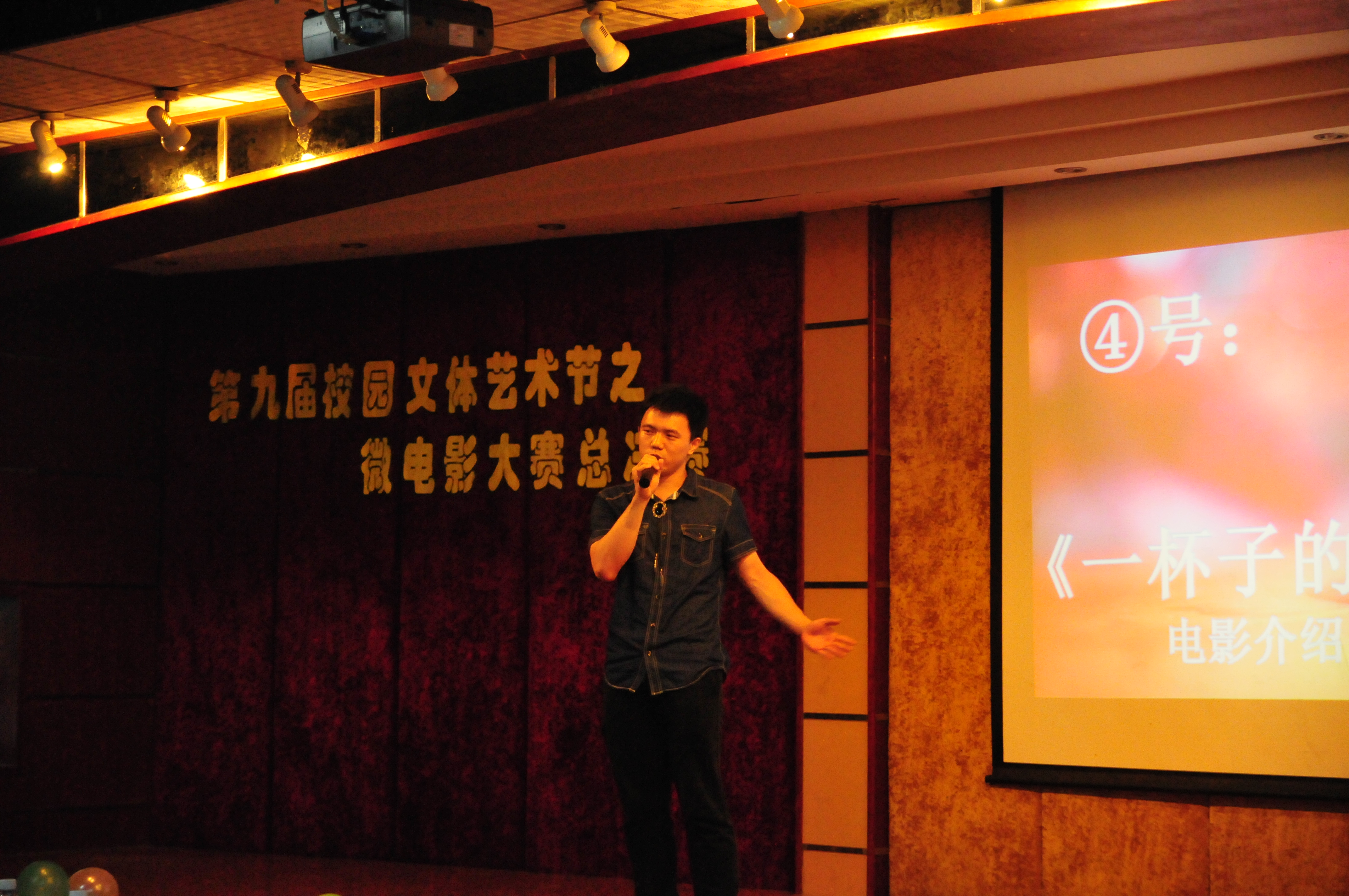 大赛随着本次微电影的宣传视频隆重拉开序幕,紧接着是14级辅导员毛西月老师上台致辞,她为观众们诠释了微电影的含义,期待着今晚会有一个让在场观众精彩难忘的晚上,并祝愿本次微电影大赛能得到圆满的成功。