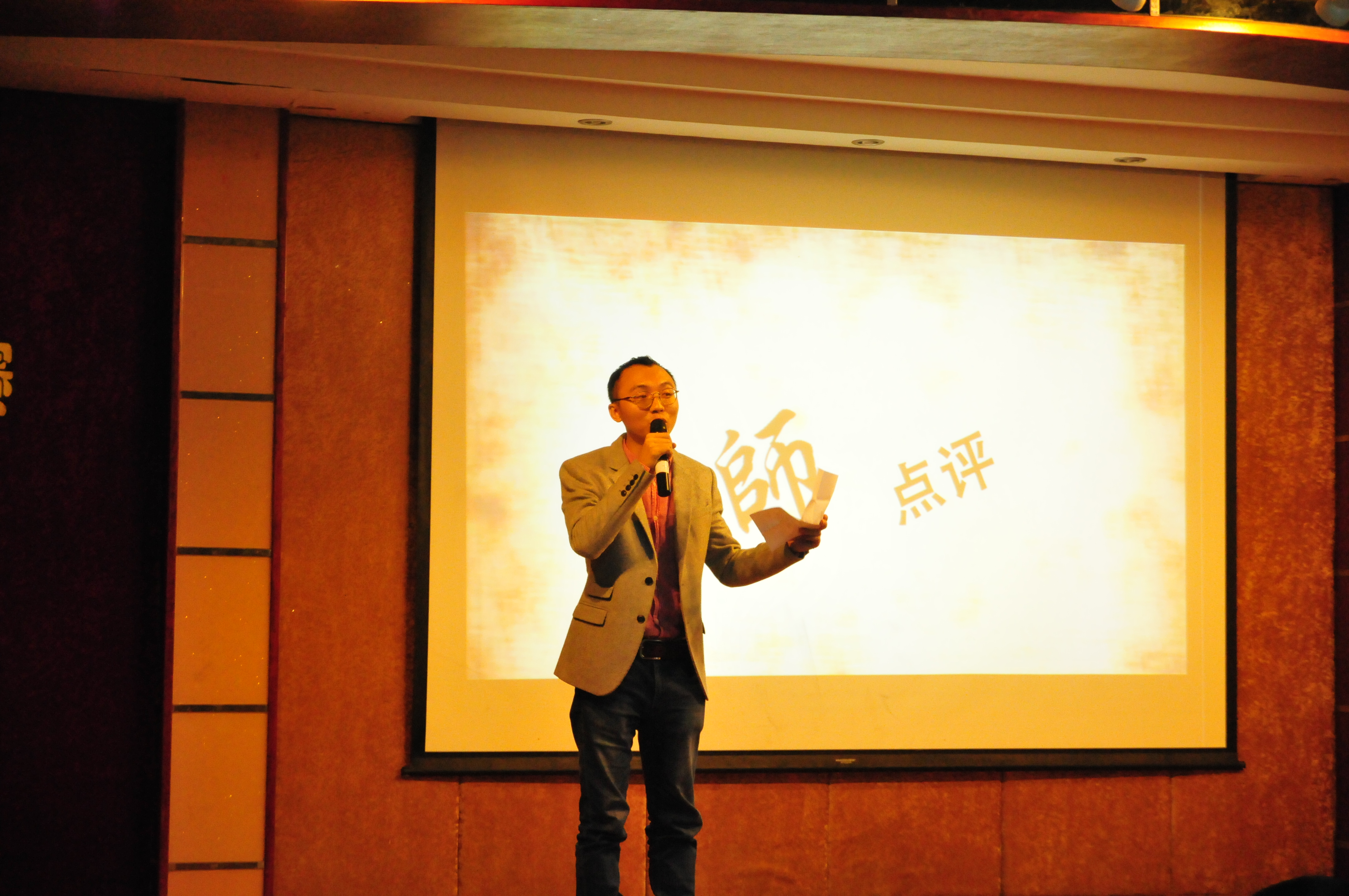 在微电影放映结束和各组负责人发言完毕后,气氛顿时紧张起来,七个小组依次上台,等待着评委给出最后的评分。在统计评分之时,微电影大赛决赛进行到了下一个重要环节——由周明华老师进行点评,在点评之中,周明华老师幽默风趣的评讲不时引起现场观众们的阵阵欢笑,同时,在老师犀利地对七部微电影作品的不足之处进行指导之时,在场众人无不感到受益匪浅。