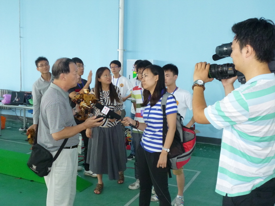 此外,由于我系参赛员工采用蓝牙技术,通过智能手机界面遥控机器人的自主研发的创新成果,是本次大赛参赛公司中唯一采用采用蓝牙技术操控机器人的院校,受到了中央电视台记者的采访,并且于7月29日在CCTV2财经频道上播出。