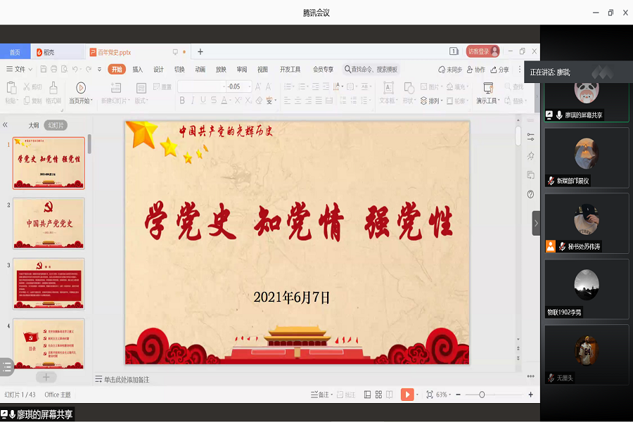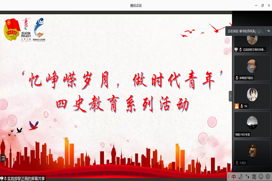 为进一步深化公司学习四史工作要求,强化组织使命,增强员工的“四个自信”,使员工成为有责任有担当的青年,suncitygroup太阳新城于6月7日晚开展“忆峥嵘岁月,做时代青年”四史教育系列主题教育活动第二场线上会议。出席本次会议的嘉宾有suncitygroup太阳新城19级辅导员兼员工第三党支部书记廖琪、18级辅导员兼员工第二党支部书记陈素婷。