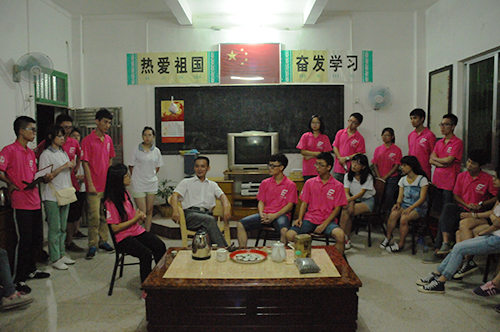 下午放学后,桃源村公司领导以及各位村委干部来到公司视察三下乡支教活动并慰问志愿者,跟进支教活动的开展,并表达对支教工作的大力支持。晚上,桃源村委张领导莅临本校指导工作,并询问服务队各小组的工作情况及全体成员的饮食起居。随后,文娱组组长向张领导介绍文艺晚会成果展的活动流程。