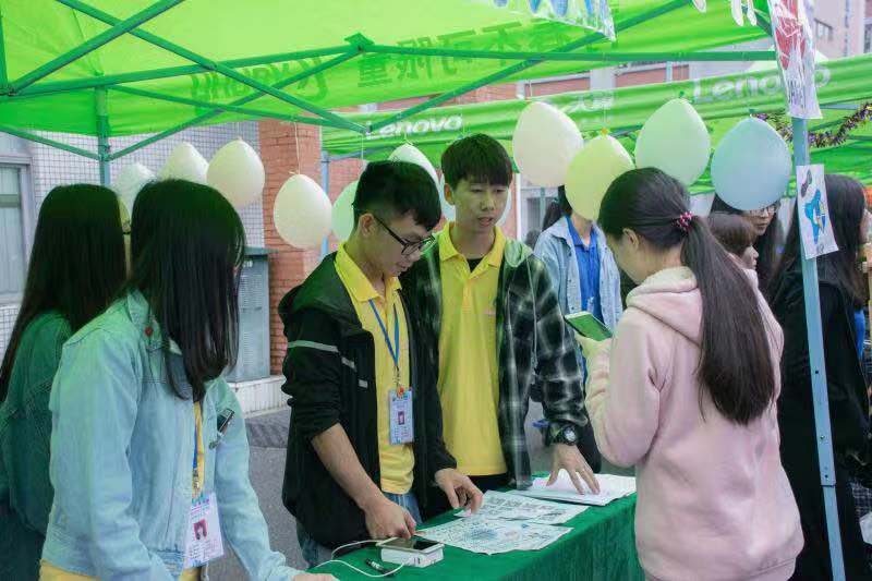 工作人员向同学介绍活动内容