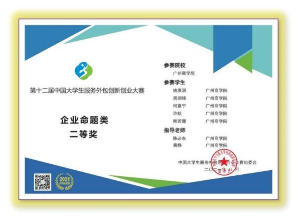 获2021年第十二届中国老员工服务外包创新创业大赛全国二等奖