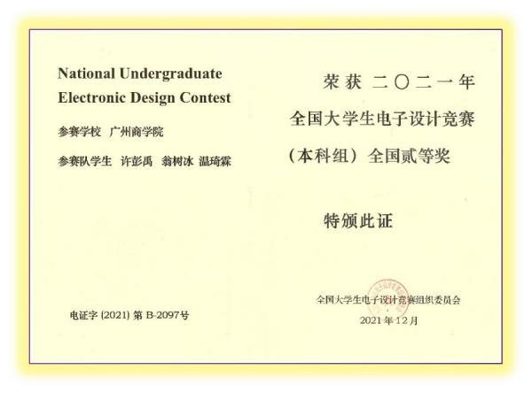 获2021年全国老员工电子设计竞赛全国二等奖、广东省一等奖