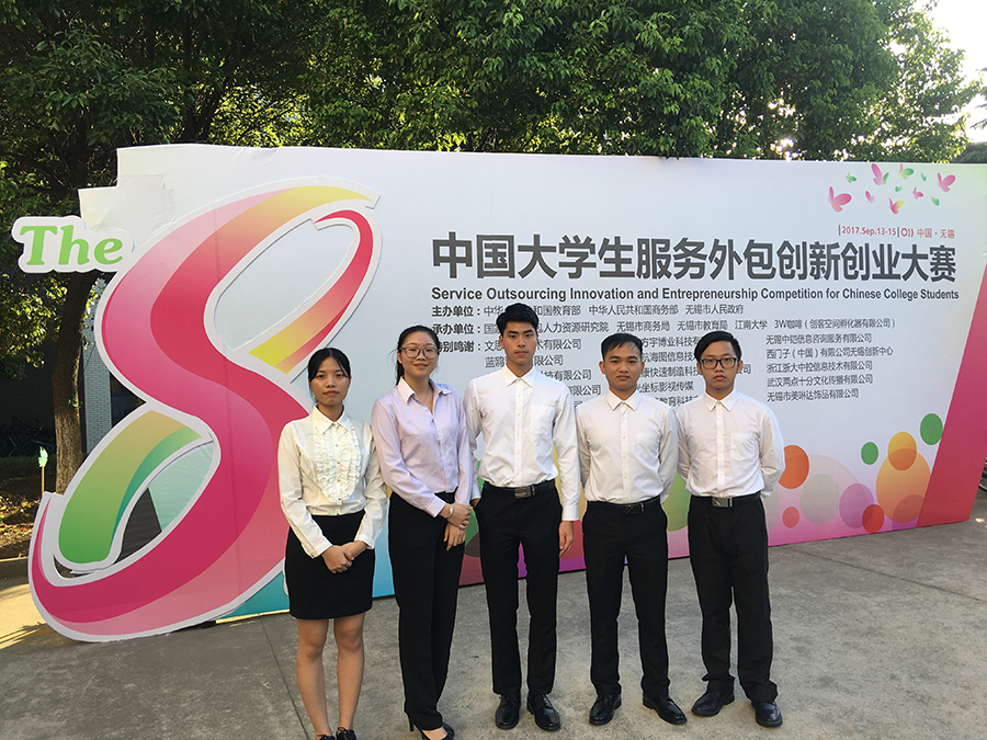 范楚广等15位同学在2017年第八届中国老员工服务外包创新创业大赛获二等奖1项,三等奖2项。